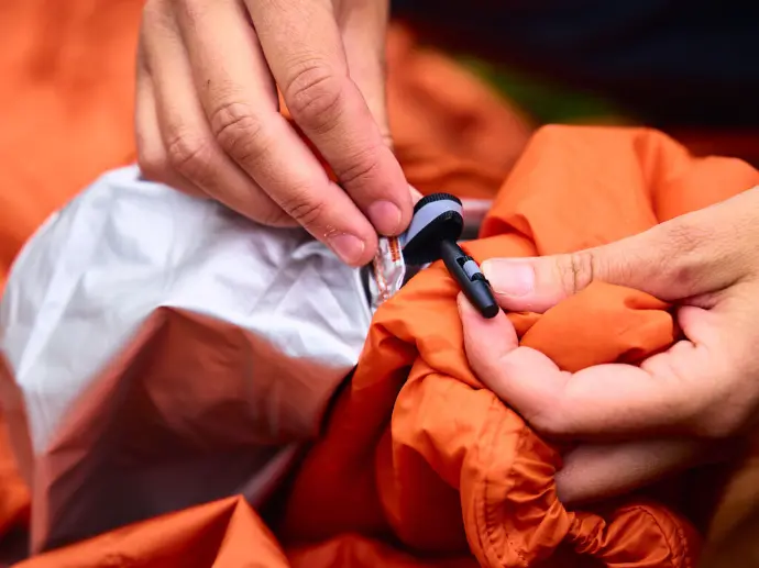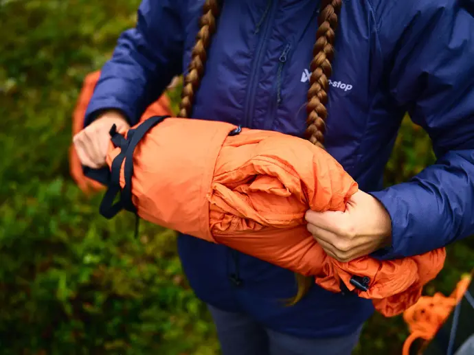 Ondanks zijn duurzaamheid is dit systeem ultra licht en gemakkelijk in te pakken. De dunne buitenlaag en PrimaLoft® isolatie passen netjes in de kleine compressiezak, waardoor er ruimte vrijkomt in jouw of de rugzak van je hond voor andere essentiële spullen.