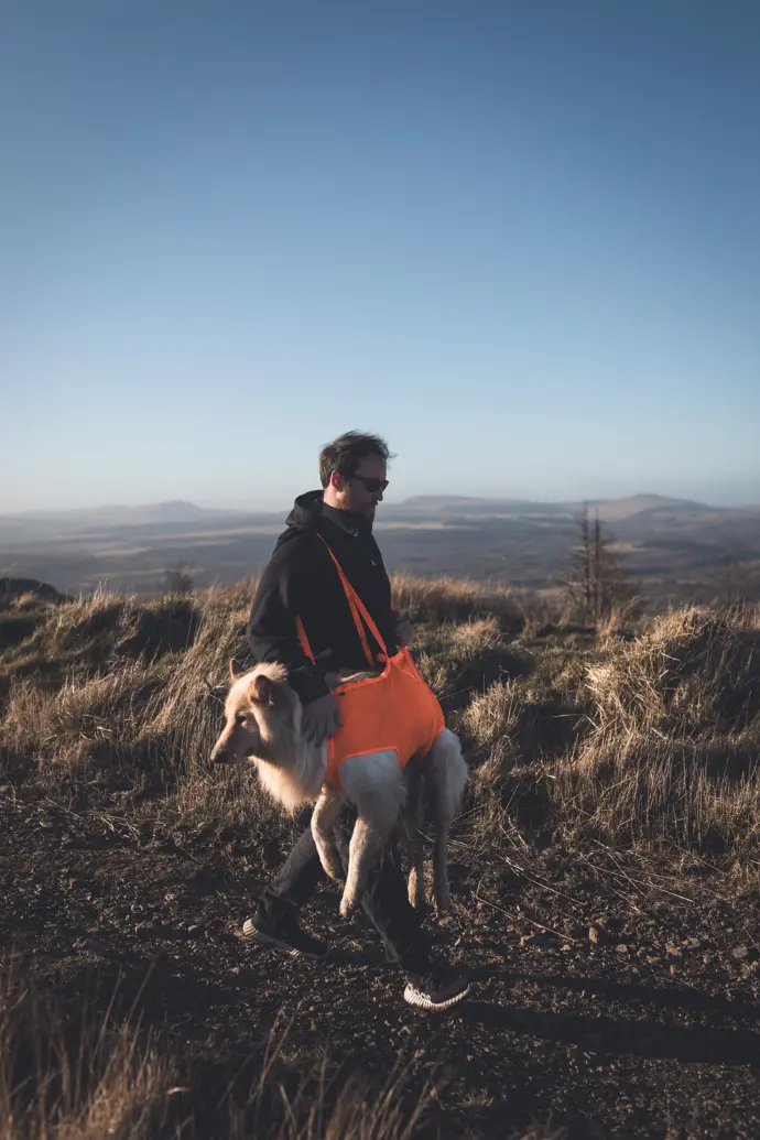 The universal design lets you quickly secure your dog in the sling without worrying about orientation, while adaptable carrying straps adjust to any situation.